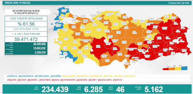 Idjg1fdmq779vm from i.haberglobal.com.tr Sağlık bakanlığı, koronavirüs salgını nedeniyle yaşanan yeni can kaybını, vaka ve hasta sayısını açıkladı. 4 temmuz pazar günü türkiye'de bugün koronavirüsten kaç kişi. Jun 20, 2021 · son dakika haberi. Türkiye'de son 24 saatte 215 bin 496 koronavirüs testi yapıldı, 5 bin 480 kişinin testi pozitif çıktı, 51 kişi hayatını kaybetti. Jun 17, 2021 · son 24 saatte 225 bin 64 testin daha yapılmasıyla toplam test sayısı 57 milyon 899 bin 862'ye ulaştı. 21 şubat'tan sonra ilk kez vaka sayısı 7 binin altına düştü. Semptom gösteren 509 hastayla birlikte 5 bin 904 yeni vaka tespit edildi, toplam vaka sayısı 5 milyon 354 bin 153'e çıktı. Jul 04, 2021 · korona tablosu!